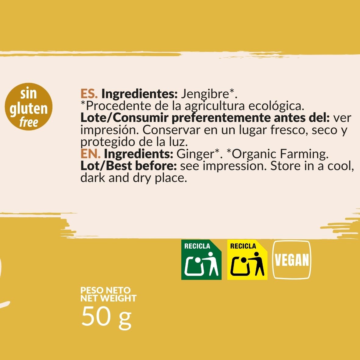 Ingredientes: 100% Jengibre*.