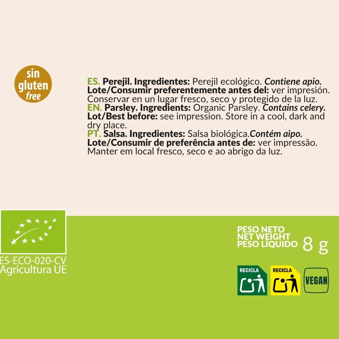Ingredientes: 100% Perejil*.