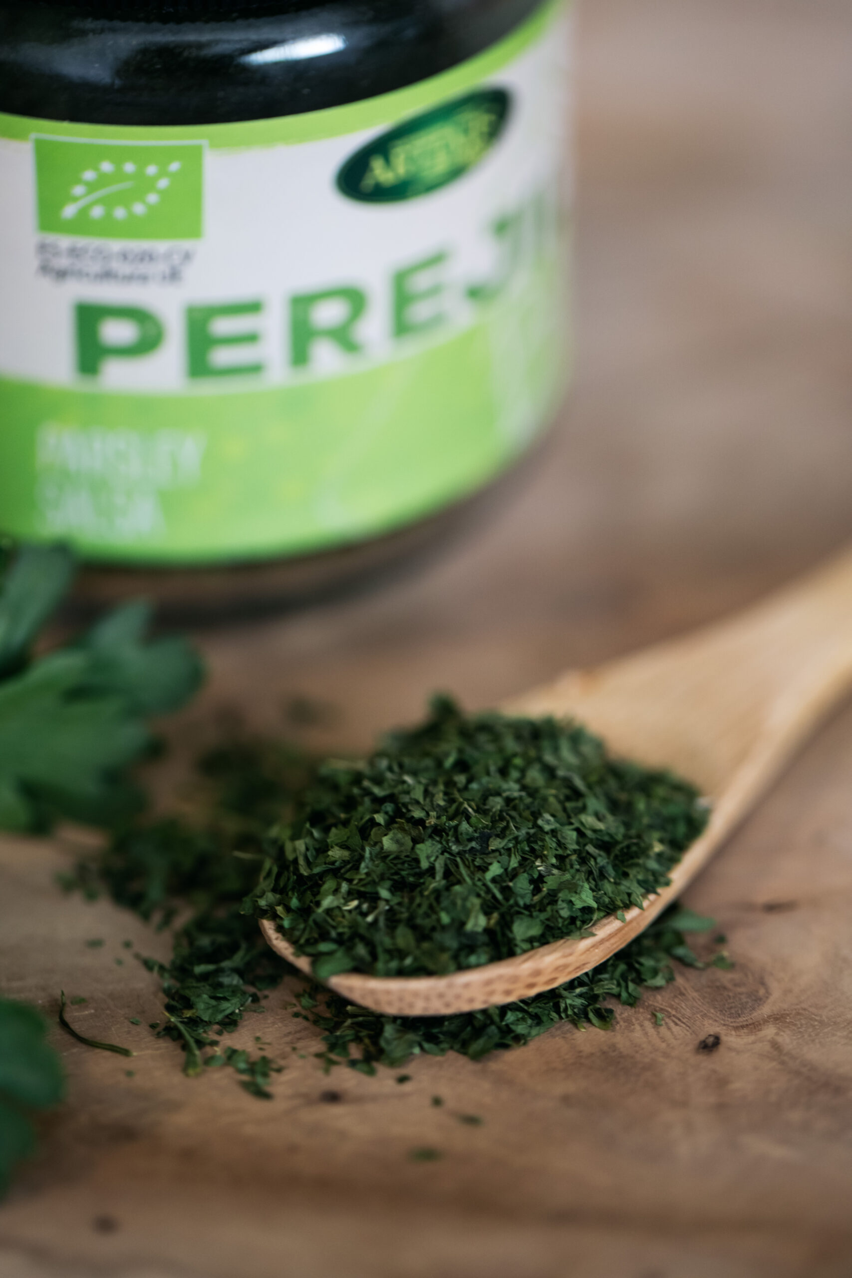 El tarro grande de perejil es ideal para tener siempre a mano esta hierba aromática de sabor fresco y suave. Perfecto para sopas, salsas, ensaladas, guisos y platos de pescado o carne.